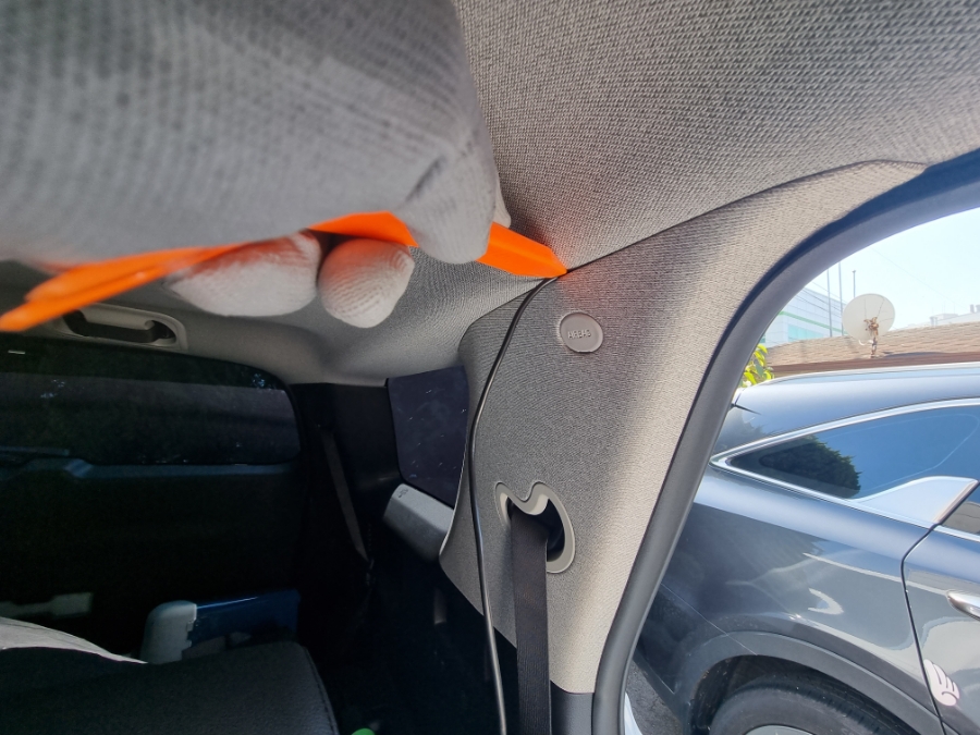 이렇게 천장 내장제 틈으로 배선을 넣으면서 뒷좌석