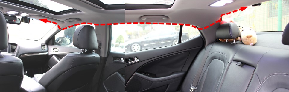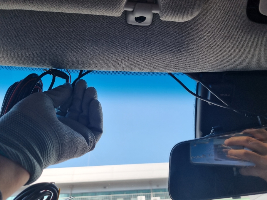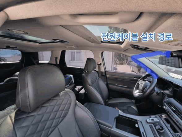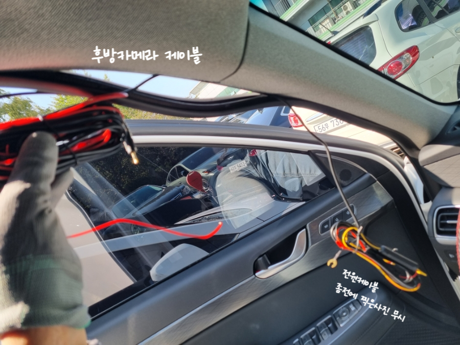 전원케이블과 후방카메라 케이불은 천장 마감제 틈으로