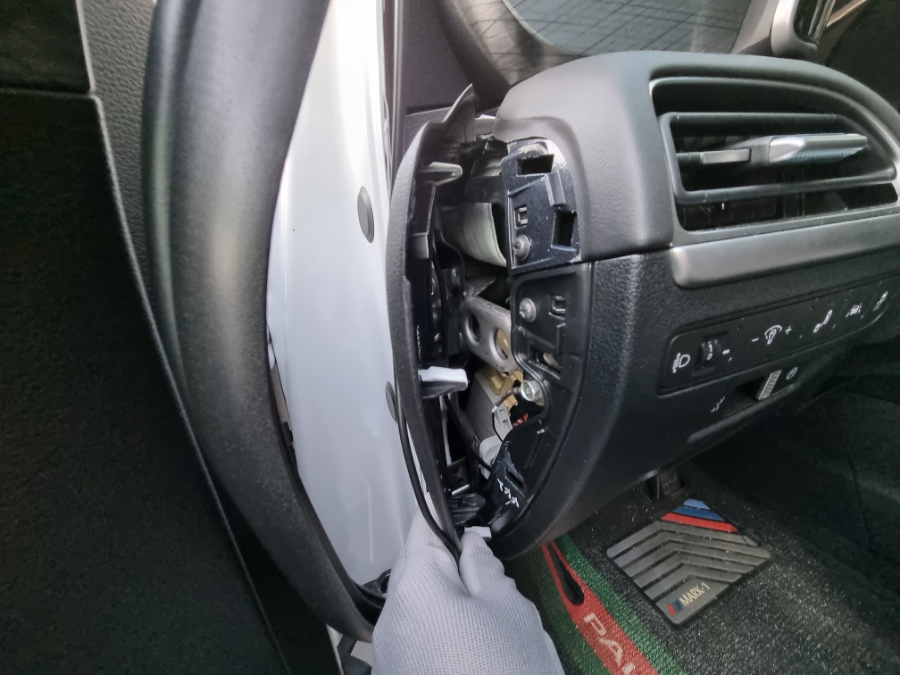 이렇게 A필러 내장제는 당기면 쉽게 빠지는데요.