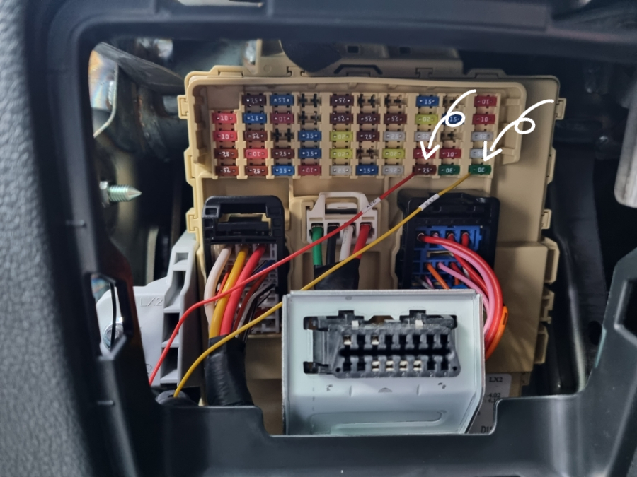 측면 휴즈박스가 있는곳 까지 전원케이블을 내립니다.